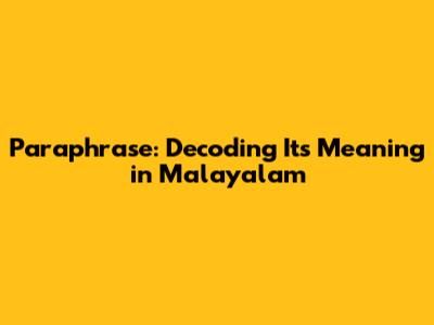 Hey guys! Ever stumbled upon the word "paraphrase" and wondered what the heck it means? Well, you're in the right place! Today, we're diving deep into the paraphrase meaning in Malayalam, exploring its nuances, and figuring out how to use it like a pro. Think of it as your friendly guide to understanding and using paraphrasing effectively, especially if Malayalam is your jam. Let's get started!