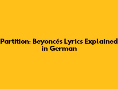 Let's dive deep into Beyoncé's iconic track, "Partition," and break down its lyrics, especially for our German-speaking fans! This song is more than just a catchy tune; it's a bold and sensual anthem that celebrates female empowerment and confidence. Understanding the lyrics in German can give you a whole new appreciation for the artistry behind the song. Guys, get ready to explore the hidden meanings and cultural references packed into this modern classic. We’ll go through each verse, explaining the nuances and making sure you grasp the full impact of Beyoncé's message. So, whether you're a die-hard fan or just curious, buckle up for a lyrical journey through "Partition!"