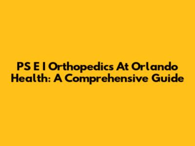 PS E I Orthopedics At Orlando Health: A Comprehensive Guide