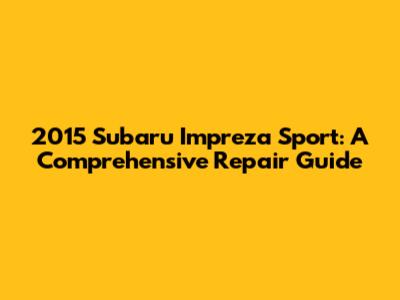 2015 Subaru Impreza Sport: A Comprehensive Repair Guide