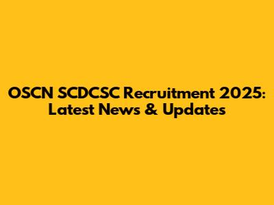 OSCN SCDCSC Recruitment 2025: Latest News & Updates