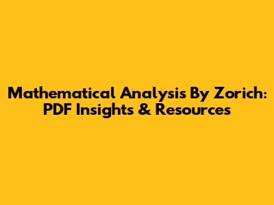 Mathematical Analysis By Zorich: PDF Insights & Resources