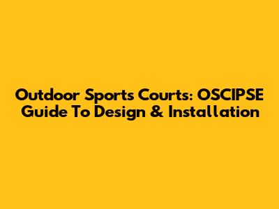 Outdoor Sports Courts: OSCIPSE Guide To Design & Installation