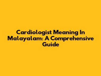 Cardiologist Meaning In Malayalam: A Comprehensive Guide