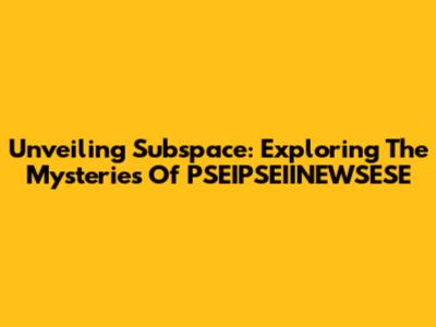 Unveiling Subspace: Exploring The Mysteries Of PSEIPSEIINEWSESE