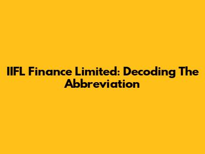 IIFL Finance Limited: Decoding The Abbreviation