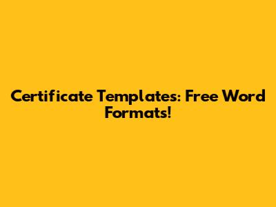 Certificate Templates: Free Word Formats!