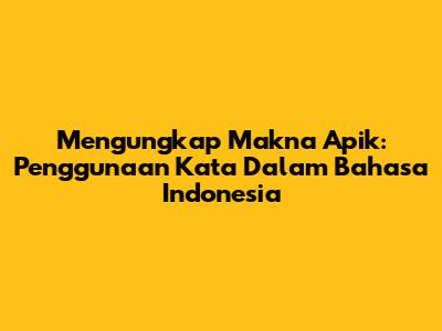 Mengungkap Makna Apik: Penggunaan Kata Dalam Bahasa Indonesia