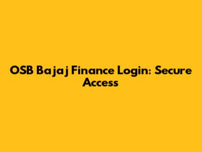 OSB Bajaj Finance Login: Secure Access