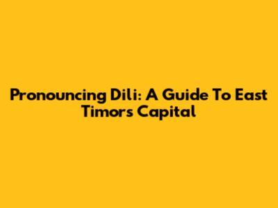 Pronouncing Dili: A Guide To East Timor's Capital