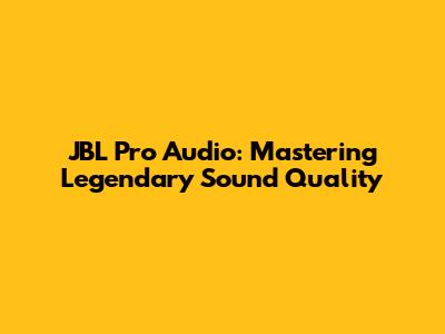 JBL Pro Audio: Mastering Legendary Sound Quality