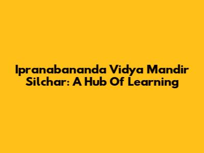 Ipranabananda Vidya Mandir Silchar: A Hub Of Learning