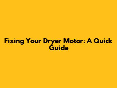 Fixing Your Dryer Motor: A Quick Guide