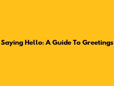 Saying Hello: A Guide To Greetings