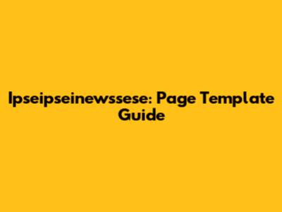 Ipseipseinewssese: Page Template Guide
