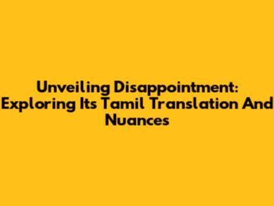 Unveiling Disappointment: Exploring Its Tamil Translation And Nuances