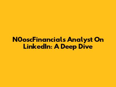 N0oscFinancials Analyst On LinkedIn: A Deep Dive