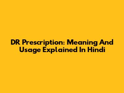 DR Prescription: Meaning And Usage Explained In Hindi