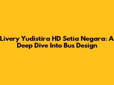 Livery Yudistira HD Setia Negara: A Deep Dive Into Bus Design