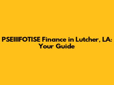 Hey guys! Let's dive into the world of PSEIIIFOTISE Finance in Lutcher, Louisiana. If you're scratching your head, wondering what this is all about, don't worry! We're going to break it down in a way that's easy to understand. Whether you're a local resident or just curious about financial services in this area, this guide is for you. We'll explore what PSEIIIFOTISE Finance might entail, the kinds of services you can expect, and how it fits into the Lutcher community. So, buckle up and let's get started!
