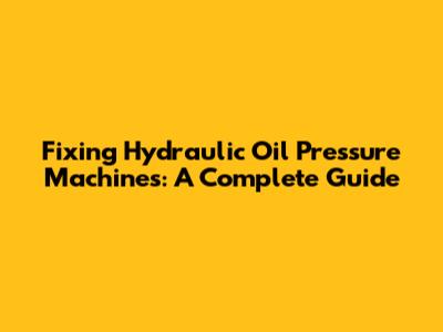 Fixing Hydraulic Oil Pressure Machines: A Complete Guide