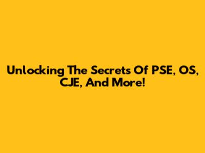 Unlocking The Secrets Of PSE, OS, CJE, And More!