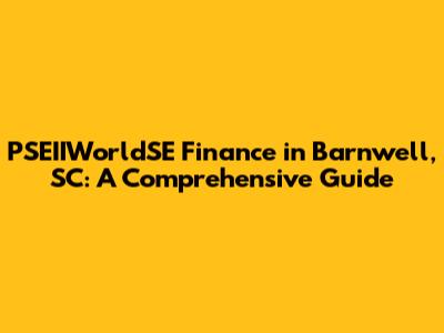 Hey guys! Ever wondered about PSEIIWorldSE Finance in Barnwell, SC? Well, buckle up because we're diving deep into everything you need to know about this financial powerhouse in the heart of South Carolina. We'll be covering the ins and outs, so you can get a solid understanding of what they offer, how they operate, and why they might be a good fit for your financial needs. Barnwell, SC, might seem like a small town, but it's home to some pretty significant players in the financial world, and PSEIIWorldSE Finance is definitely one of them. So, whether you're a local resident, a business owner, or just curious about the financial landscape of Barnwell, you're in the right place. Let's get started!