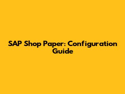 SAP Shop Paper: Configuration Guide