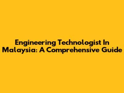 Engineering Technologist In Malaysia: A Comprehensive Guide