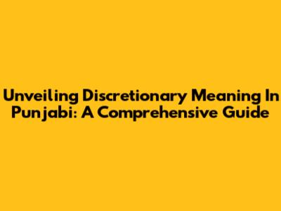 Unveiling Discretionary Meaning In Punjabi: A Comprehensive Guide