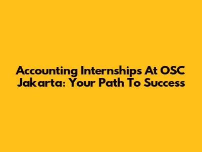 Accounting Internships At OSC Jakarta: Your Path To Success
