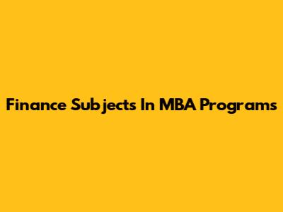Finance Subjects In MBA Programs