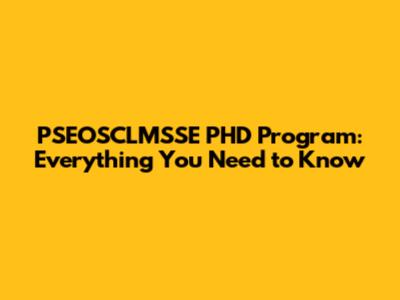 Are you looking to advance your education and career? Guys, check out the PSEOSCLMSSE Ph.D. program! This article covers everything you need to know, including what PSEOSCLMSSE stands for, the admission requirements, the curriculum, and the career opportunities available after completing the program.