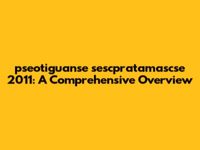 Let's dive into the details of "pseotiguanse sescpratamascse 2011." This term seems complex, but we're here to break it down and understand what it represents. In this article, we will explore its potential meanings, contexts, and any relevant information associated with it. Whether you're a seasoned researcher or just curious, we'll provide a comprehensive overview to clarify this topic.