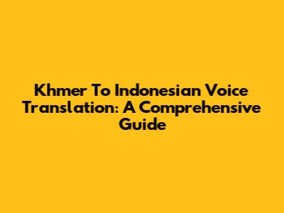 Khmer To Indonesian Voice Translation: A Comprehensive Guide