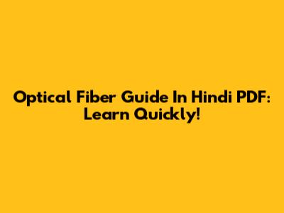 Optical Fiber Guide In Hindi PDF: Learn Quickly!