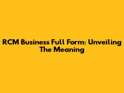 | Read Also : RCM Business Full Form: Unveiling The Meaning -