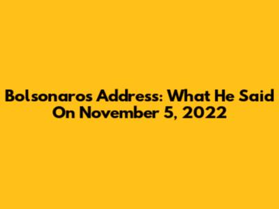 Bolsonaro's Address: What He Said On November 5, 2022