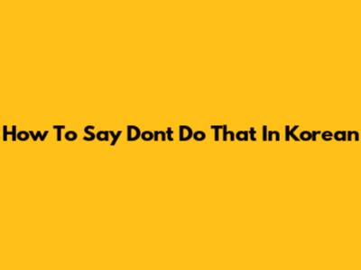 How To Say "Don't Do That" In Korean