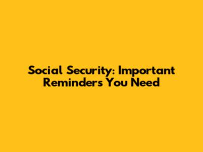 Social Security: Important Reminders You Need
