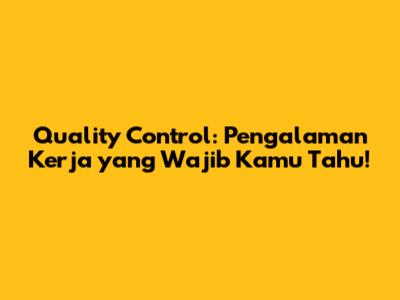 Tips Sukses dalam Pengalaman Kerja Quality Control