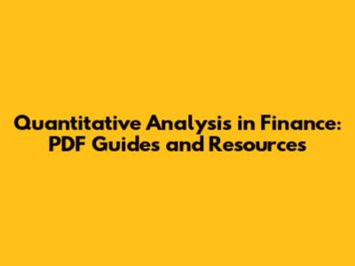Where to Find Quantitative Analysis Finance PDF Resources