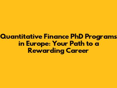 Why Pursue a PhD in Quant Finance in Europe?