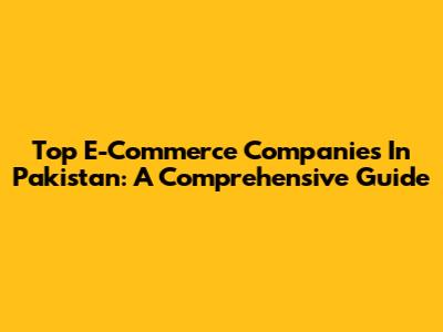 Top E-Commerce Companies In Pakistan: A Comprehensive Guide