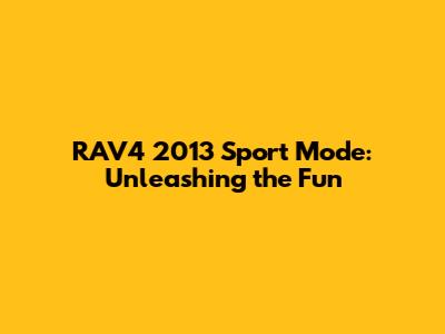 Hey there, fellow car enthusiasts! Let's dive into the 2013 Toyota RAV4 Sport Mode and see what makes it tick. This isn't just about pushing a button; it's about altering your driving experience. The RAV4 is a popular SUV known for its reliability and practicality. But what if you crave a little more excitement? That's where Sport Mode comes in. We will be covering the ins and outs of this feature, how it impacts your ride, and if it's right for you. Get ready to explore how this setting can change the way you interact with your RAV4 and elevate your driving experience. Understanding Sport Mode can make your drives more engaging. Whether you're navigating city streets or cruising down the highway, this feature can transform the performance of your vehicle. Let's start with a basic understanding of what Sport Mode actually does. Essentially, it's a pre-programmed setting that tweaks several key vehicle systems to enhance performance. These adjustments are designed to give you a more responsive and dynamic driving feel. If you are looking for a more exciting driving experience in your RAV4, read on to learn more.