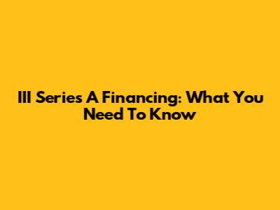 III Series A Financing: What You Need To Know