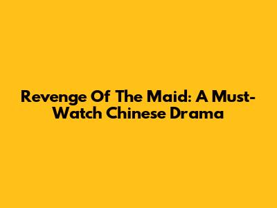 Revenge Of The Maid: A Must-Watch Chinese Drama