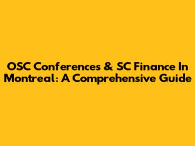 OSC Conferences & SC Finance In Montreal: A Comprehensive Guide
