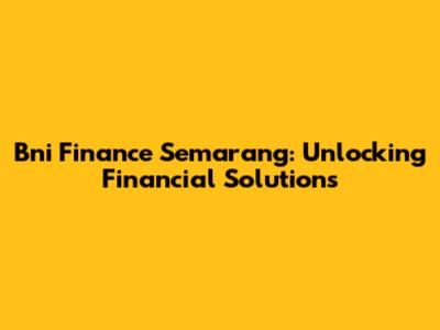 Bni Finance Semarang: Unlocking Financial Solutions