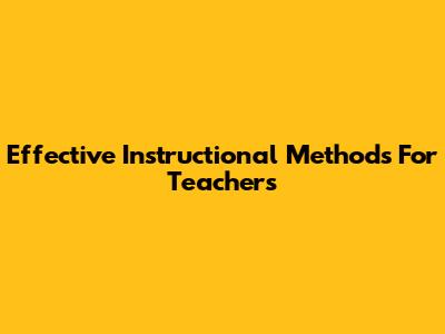 Effective Instructional Methods For Teachers